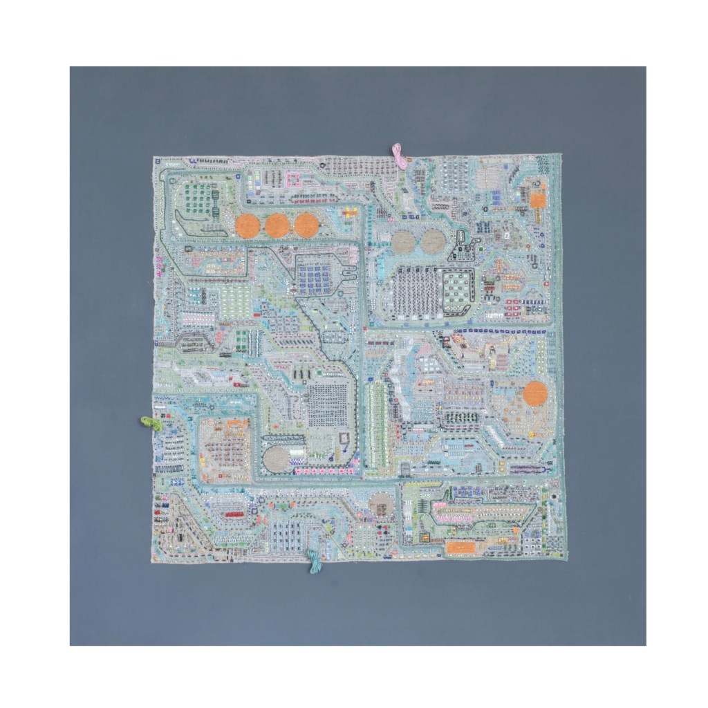 The material used in the City of Heritage serial carries important significance. The raw flax fabric where the embroidery is applied is inherited from my great-grandmother who was a farmer in the Tyrolian mountain village Wildschönau. In summer they cultivated linum, harvest it on the cliffs grassland and produced flax fibers. This was all completed by hand, by women who did this in addition to their daily chores. My grandma would tell me that in the cold snowy winter months her mum used to spin the fibers into a yarn, while regaling her with old stories. When my grandmother got married she inherited a lot of yarn from her mum who brought it to a weaving mill to get some fabric. In the olden days, they used this kind of fabric for bed sheets, but the hand produced yarn contains a lot of hard fibers and is not comfortable to sleep on. Laughing to us, my grandmother would always say, “you have to wash them at least a 100 times to get rid of the stems and itchy parts.” My grandmother never used these fabrics and when she knew that she will be gone soon, she passed the fabrics to me. “The fabrics are too rough to use and too valuable to throw away” she said. Since then, I have carried these sentimental and significant fabrics with me across the globe from Europe to Singapore.