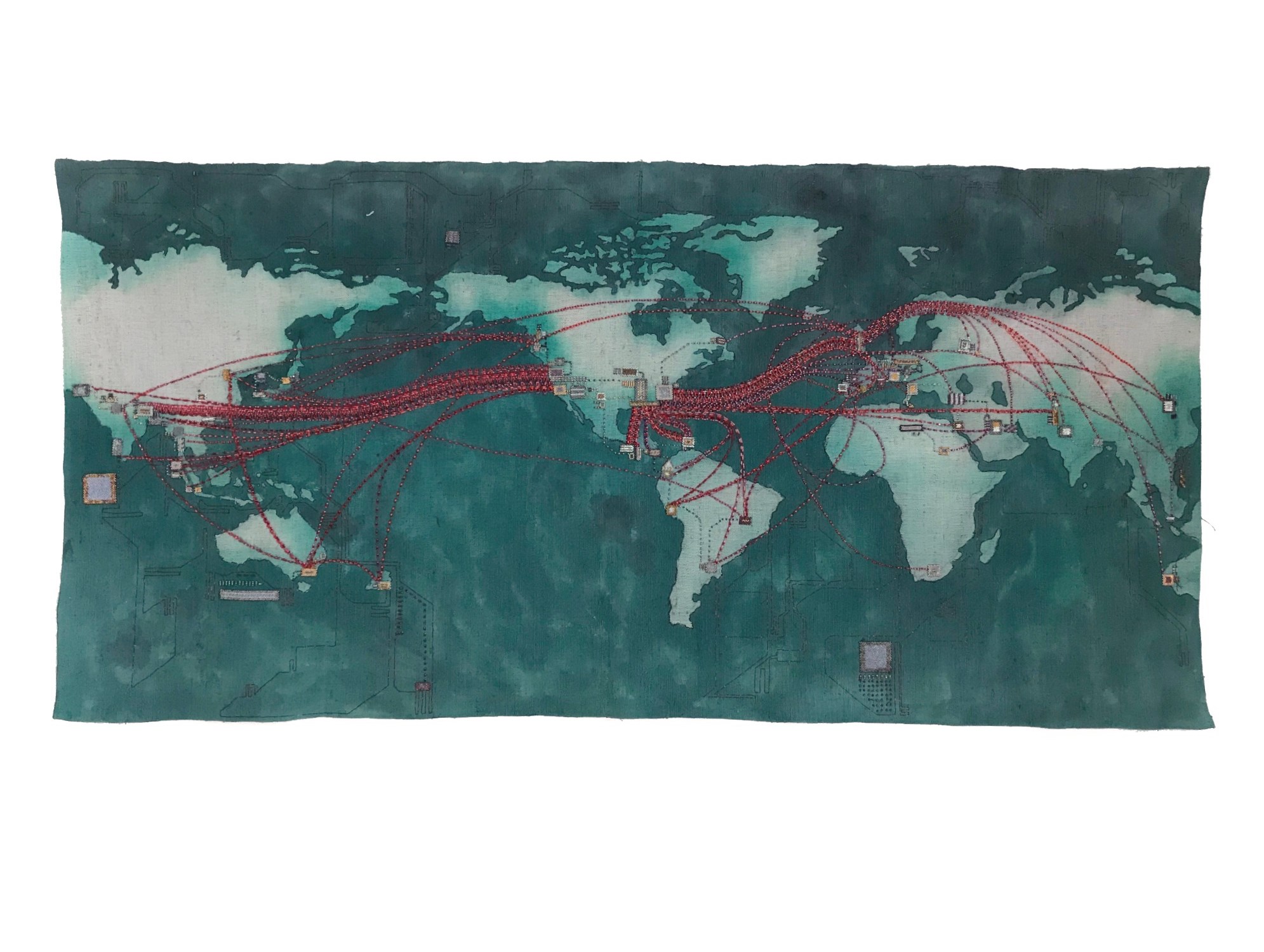 The global Traffic map of Telegeography shows the worldwide data distribution in the year 2010. The red strand, outcropping from North America is reaching every part of the world. In the ten years of our century this map illustrates the advantages of North America, Central Asia and Europe in technology, infrastructure and data exchange. How will the 2020’s look like? Will the center point of these maps shift?