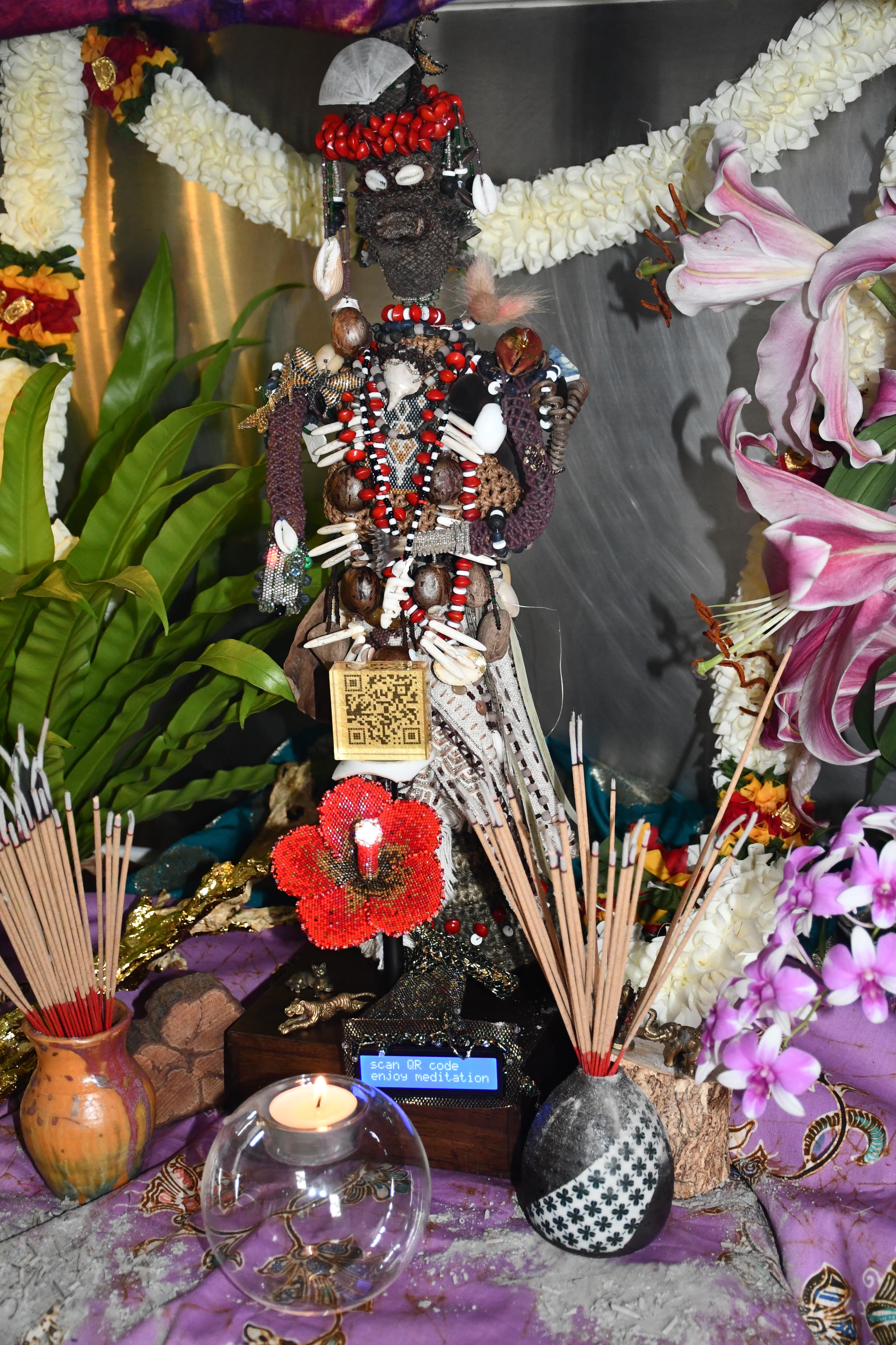 The goddess of gratitude awards you in detecting your offered fire (flame detector on the right hand). You receive a common invite, shown on the display, to scan the golden QR code which leads you to a YouTube video. The video shows you the process of assembling the sculpture in dream sequence with all the collected materials. In an effort to sharpen your awareness and gratitude, the video is accompanied by a meditation spoken by PhD Kristen Hobby, a friend, Spiritual Director and Author. She spoke the meditation to me for my 38 birthday on 21st May 2020.