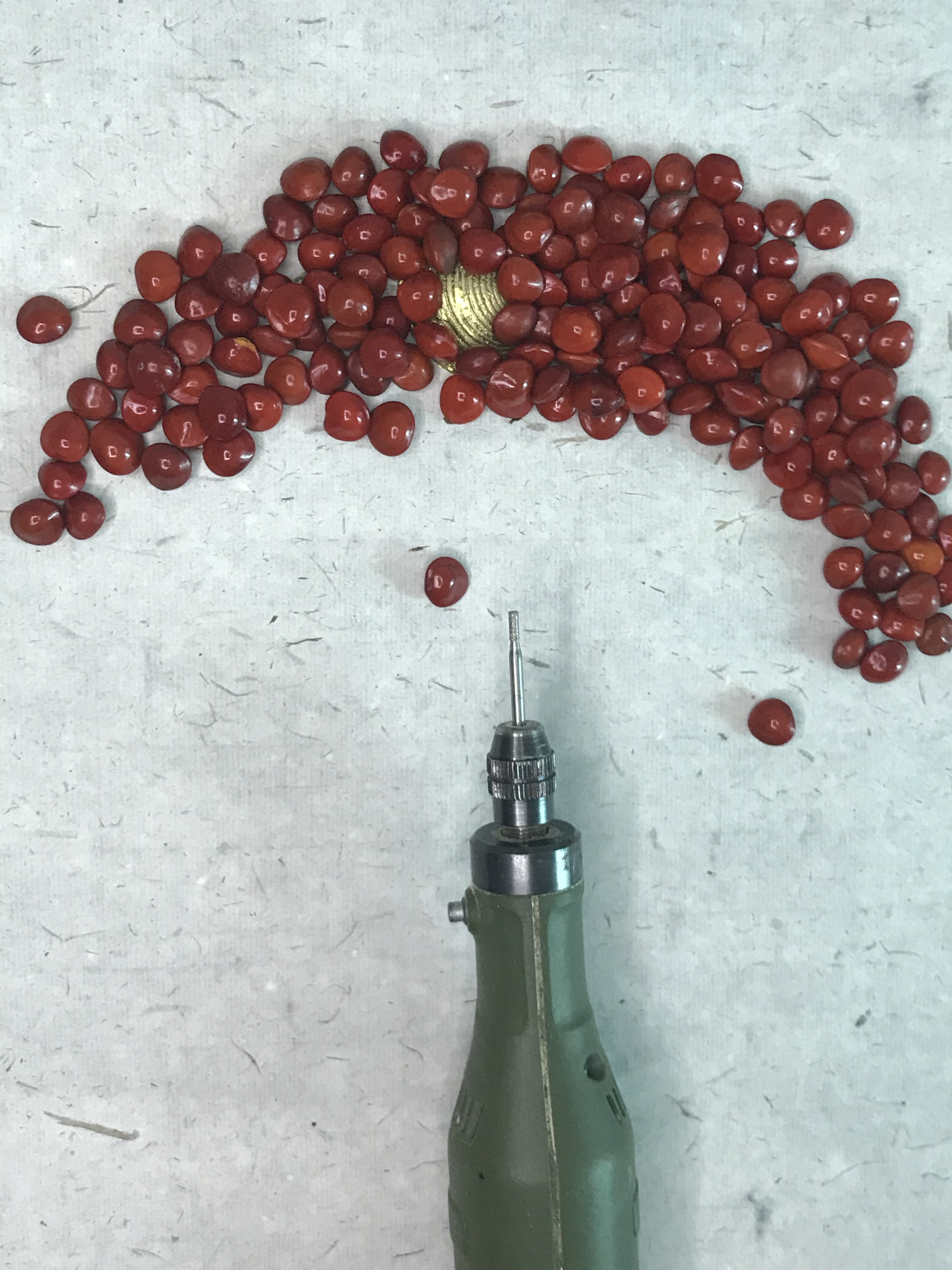 The goddess of gratitude with its materials including: beads, textiles, micro computer, sensors and wires, is my interpretation for the beneficial co-existence of the tech world in a man made garment composed of natural resources. Seeds, shells, beads and textiles symbolize our human journey. The natural impulse and impregnable effort to utilize everything in our surrounding to produce something new and meaningful. The constant push to transform the raw materials into something better, more efficient and exact. Until the material eventually dissolves into a form of digitalization consumed by us as cyberculture.