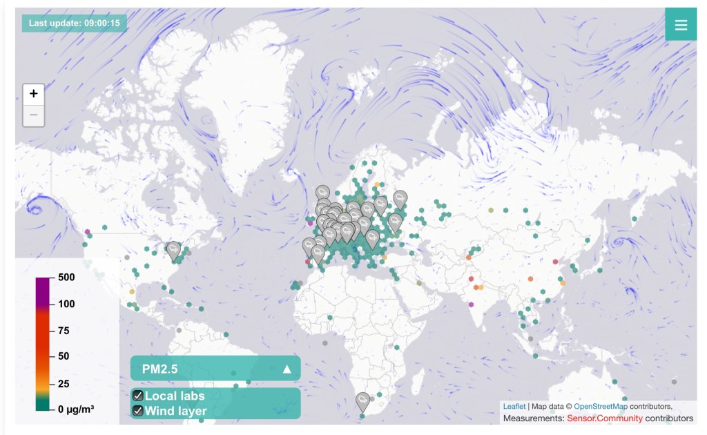 This vibrant nature sensor, called Feinstaubi, participates in the open source project Sensor.Community. The sensor measures the air temperature, humidity and the fine dust (PM 2.5 and PM 10). Inspired by the passion of Citizen Science, the artwork, disguised as passionfruit, is composed of glass beads that hide the temperature and humidity sensor inside the flower. The suction hose for the fine dust sensor is located on the exit of the canvas body, while the microcomputer (ESP8266) and the fine dust sensor are stored inside the canvas. The data is displayed on a LCD placed on the top of the installation.