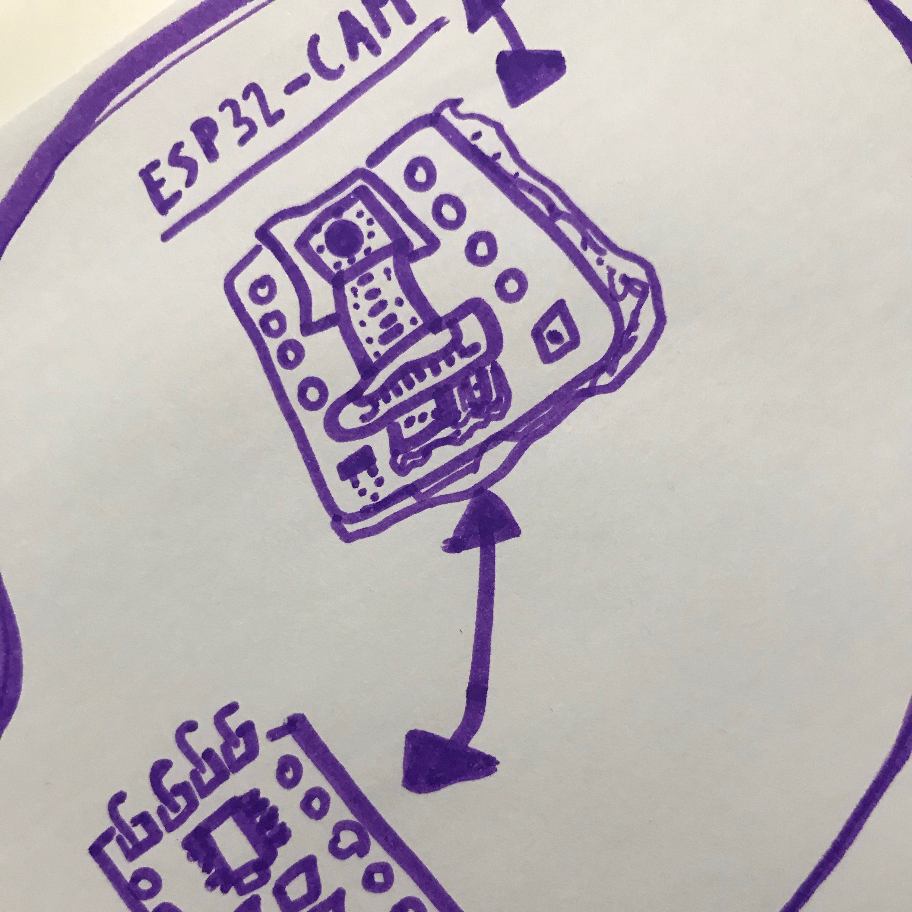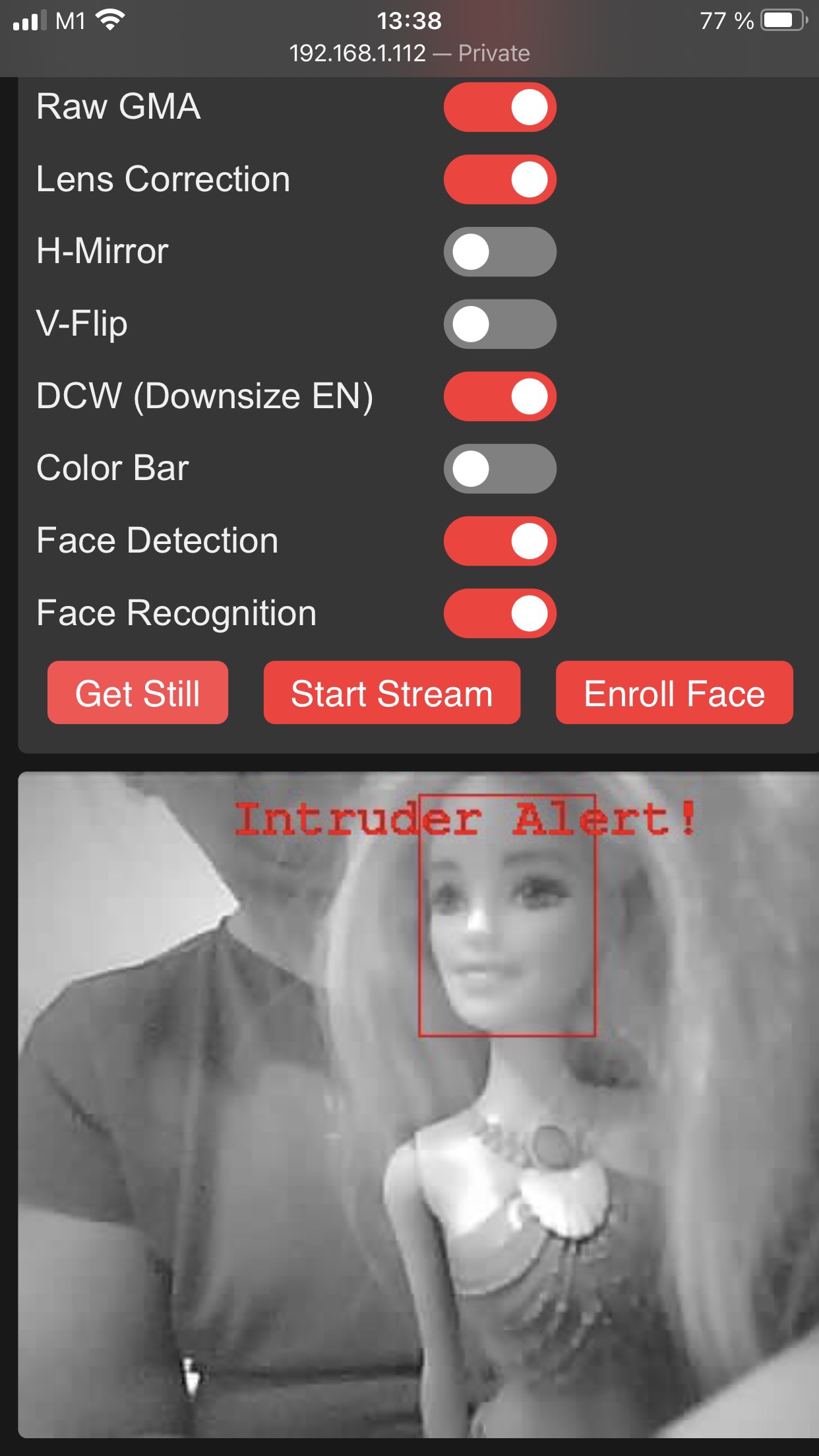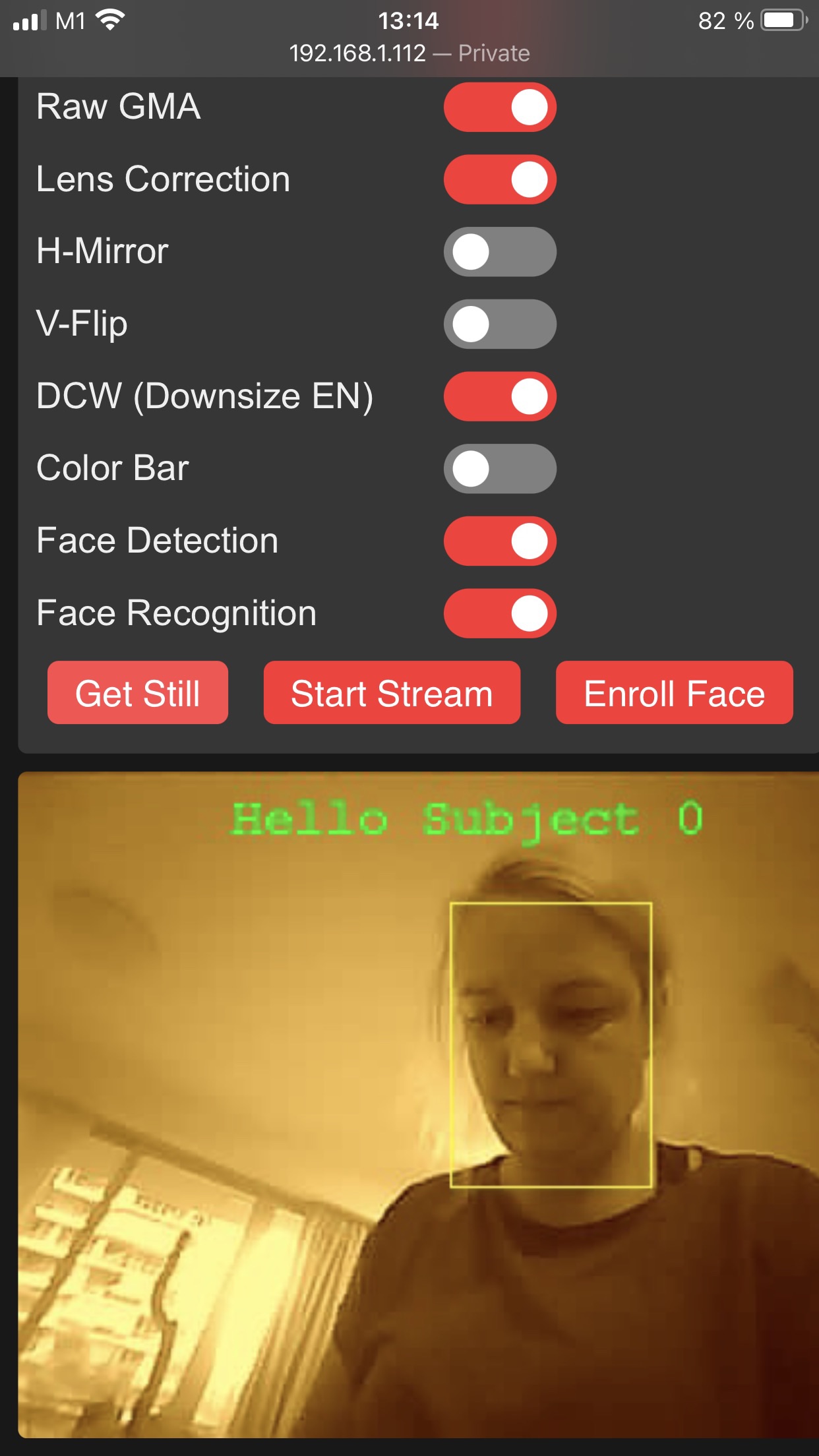 In the center of the small LED ring is space left for a camera. Any camera, small enough can be placed from the backside through the hole. For the exhibition at Artporters, I chose a fish eye camera, but before I did experiments with an ESP32-S-Cam. This camera is offering its video feed to the clients in the same network. The software runs a face detection and recognition algorithm on its observer. You can teach the program to remember you as a subject- or you can be an intruder.