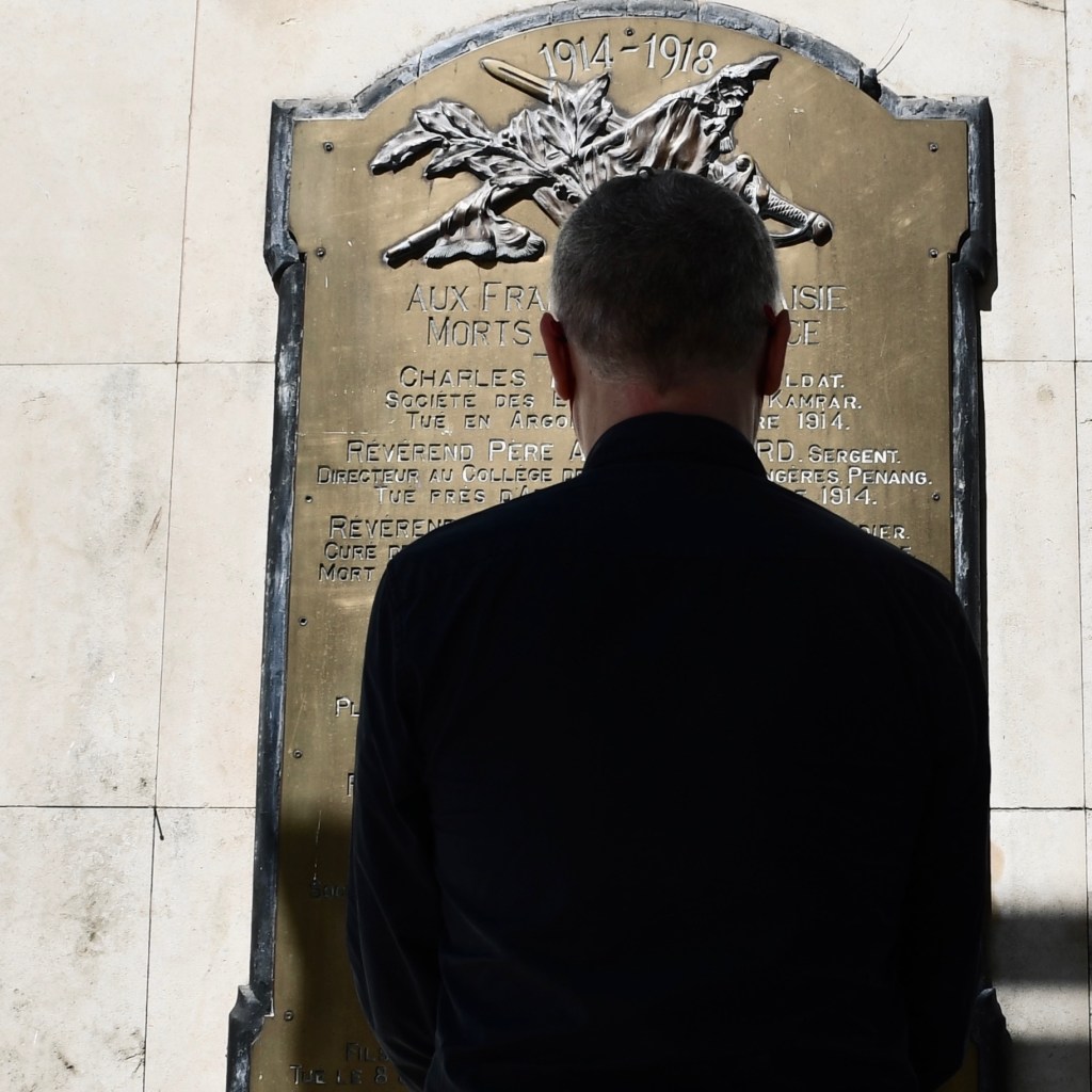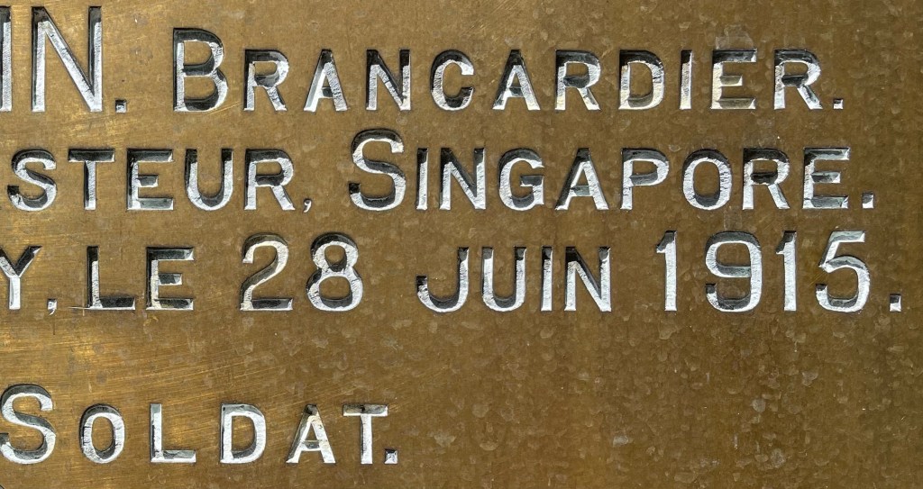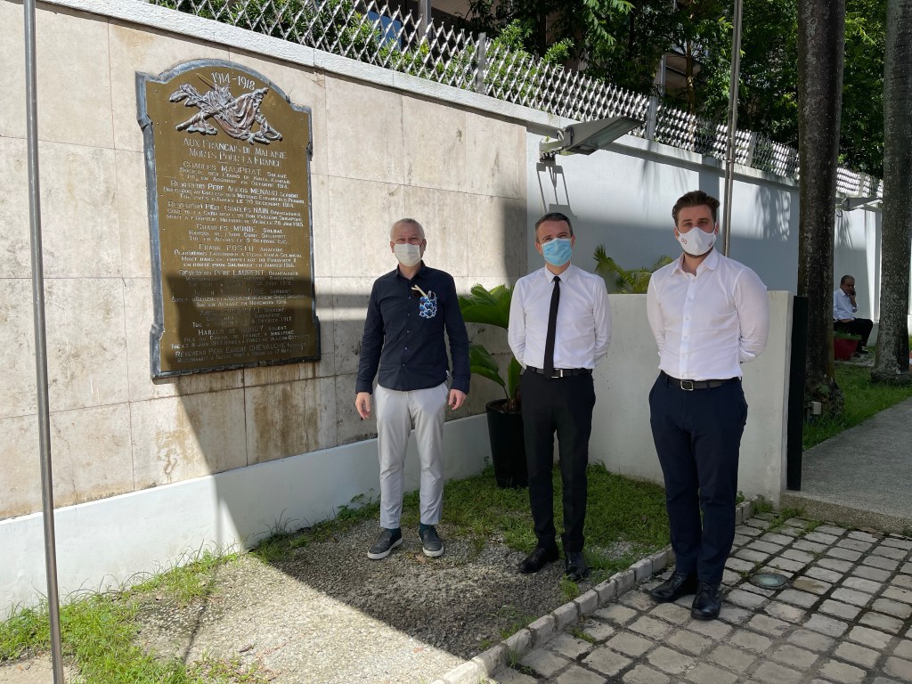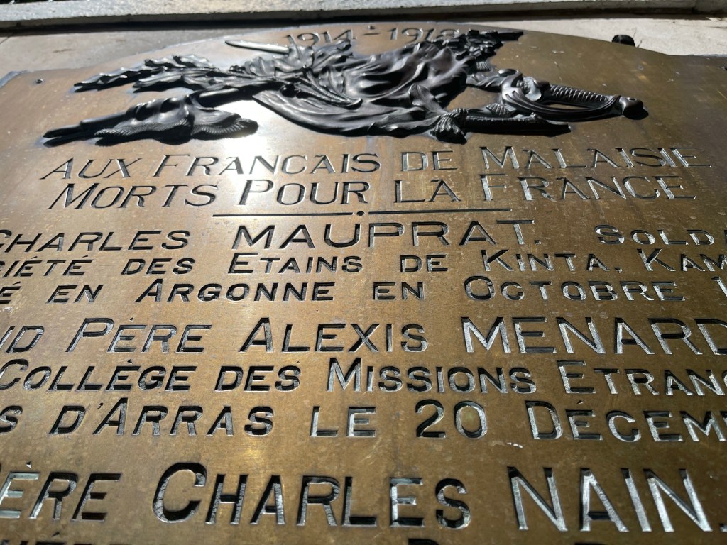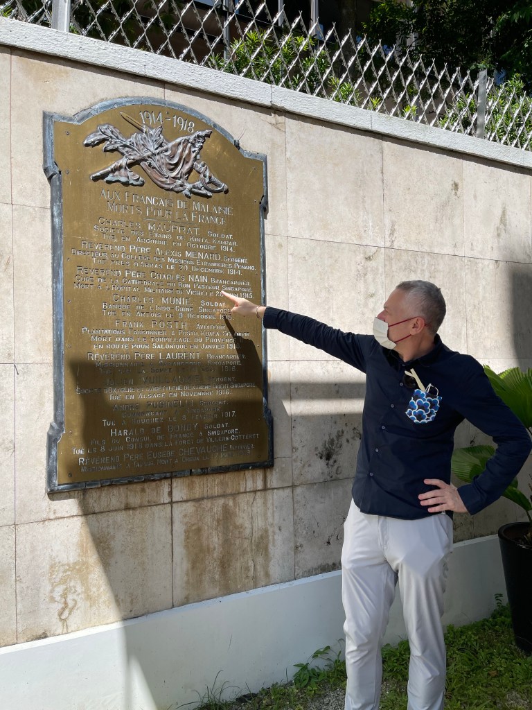 As Guillaume always endeavors to connect some dots and to highlight conjunctions, he wanted to start at a special place. He brought me to a memorial plaque at the French Embassy Singapore, which carries the very date on one of the 10 war victims listed on the plaque.
