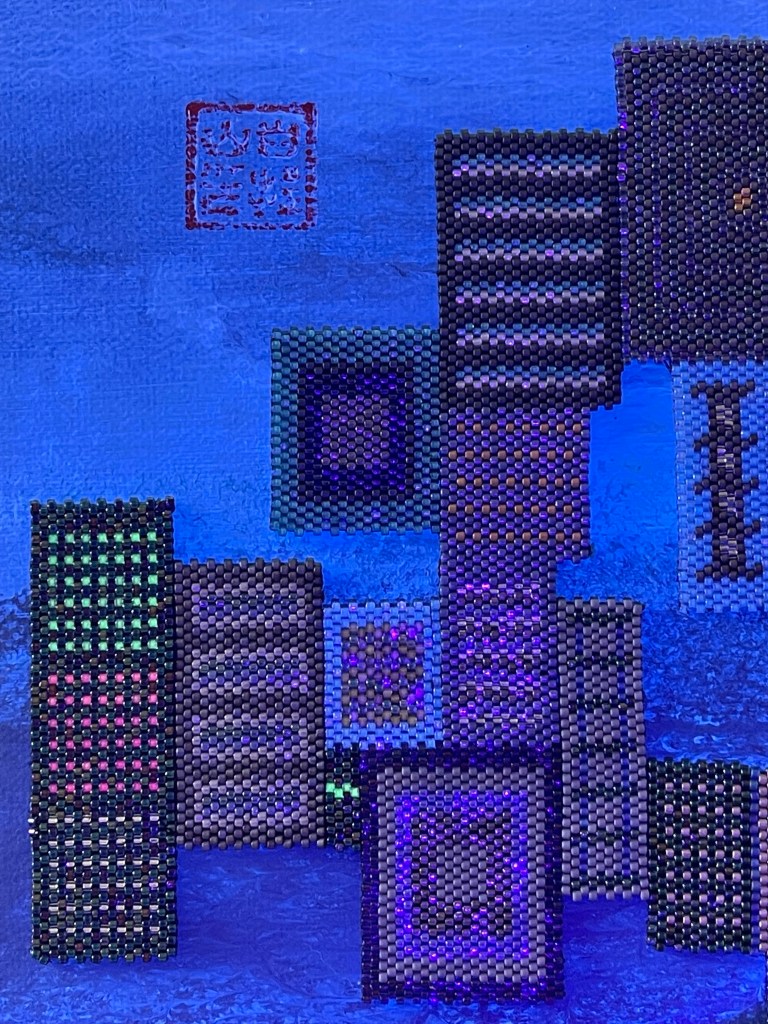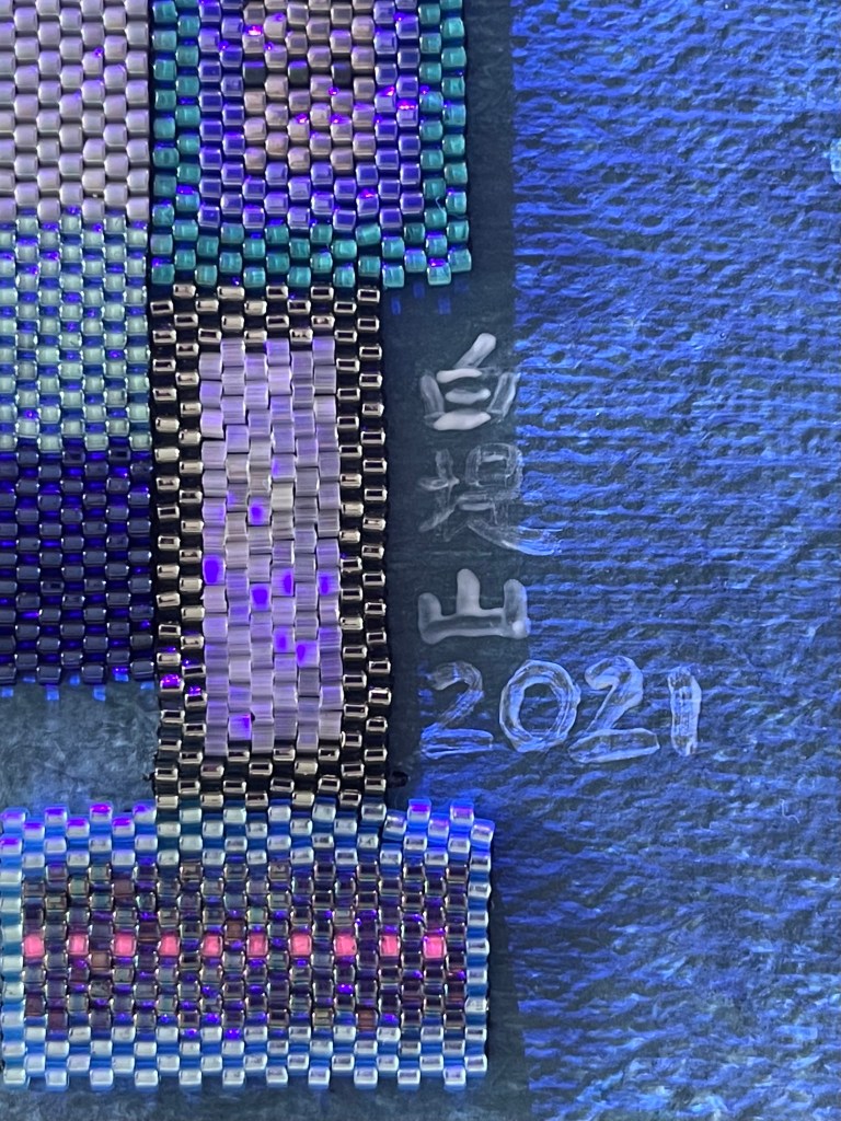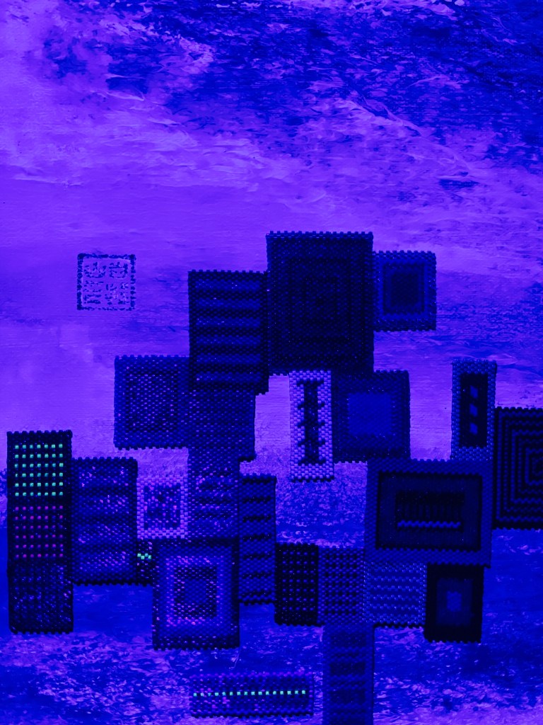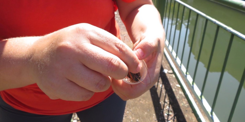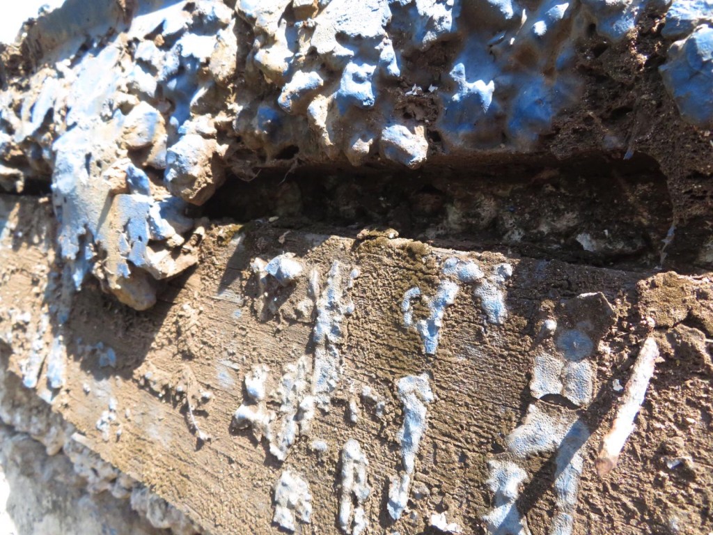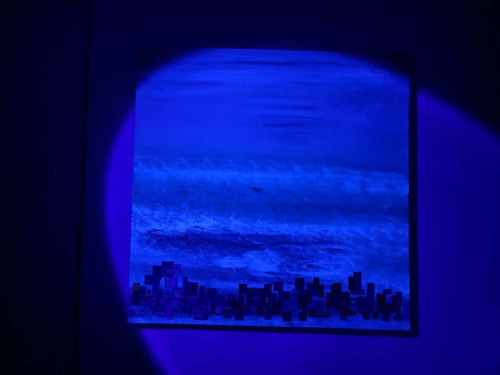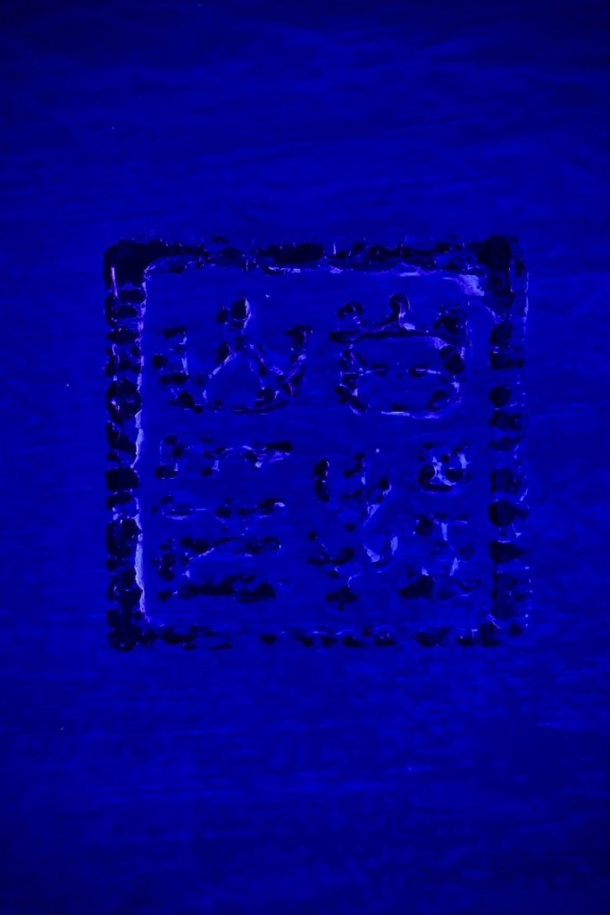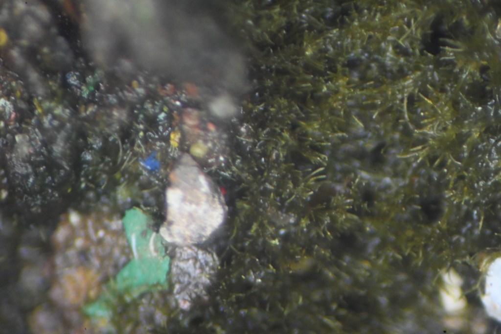 Jane examined with a magnifying loop and UV light a cleft in the wall next to the canal. On the mural there was paint, dirt and mossy soil. Under the UV light the moss appeared red and she carefully took some samples with a pair of tweezers.