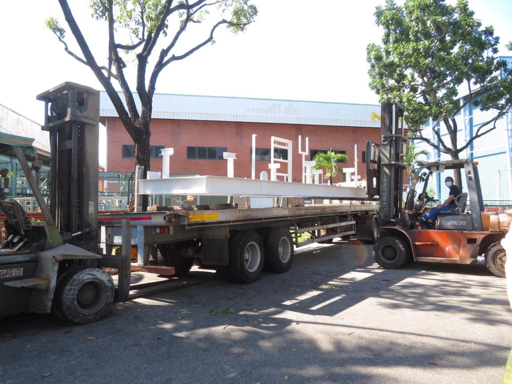 We walked from the MRT Station along the road which was decorated with flags and blessings for the young and rising city state. When we entered the Tuas Basin Link we found a street full of ship manufacturing companies.