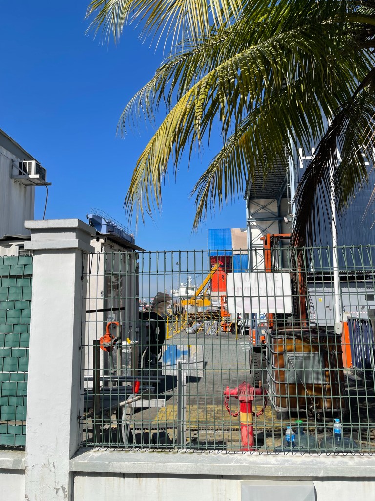 First we tried to walk around the right side to get a glimpse of the vessel on the waterfront. Around the corner several well fed street dogs were lingering around. We met two friendly workers from the neighbor company, which we asked how we can approach the waterfront. Mohamed, one of the worker, who was busy driving his lift truck with a 4 tons load told us that the waterfront is not accessible from this side.