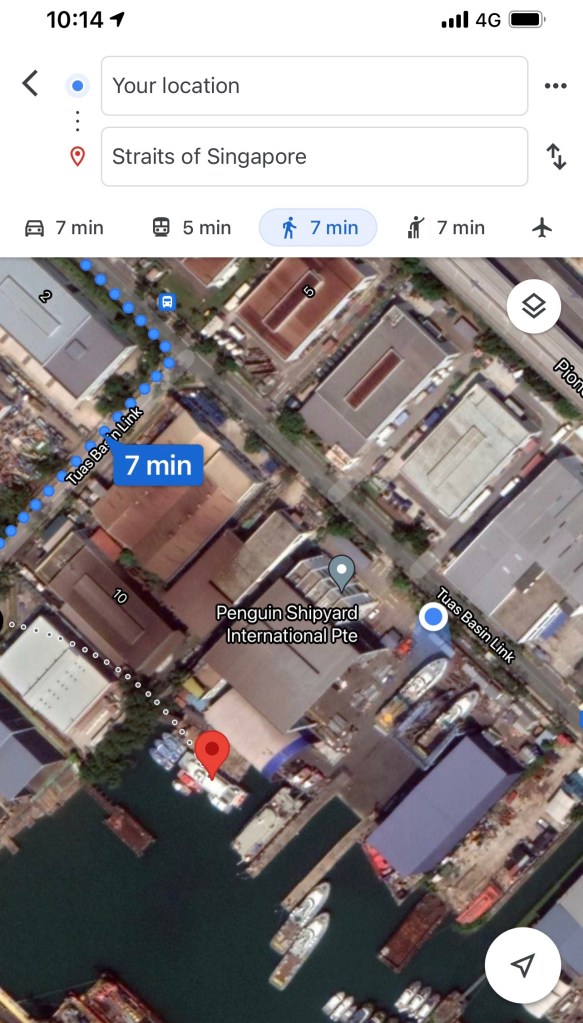 On the 9th August Jane Bi and I went out hunting for coordinate #81. Jane is a Data Scienctist and I am very excited to collect data with her. The coordinate is located near Tuas Cresent on the seaside. On Google Maps the red marker was sitting on a boat or yacht.