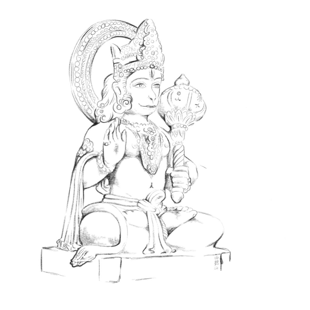 My eye got stuck to a beautiful Hanuman statue. I felt this day would become a good day. A friendly man came out of the temple and offered us some refreshments and asked us to not publish any photographs of the temple. At home I sketched the statue on the iPad.