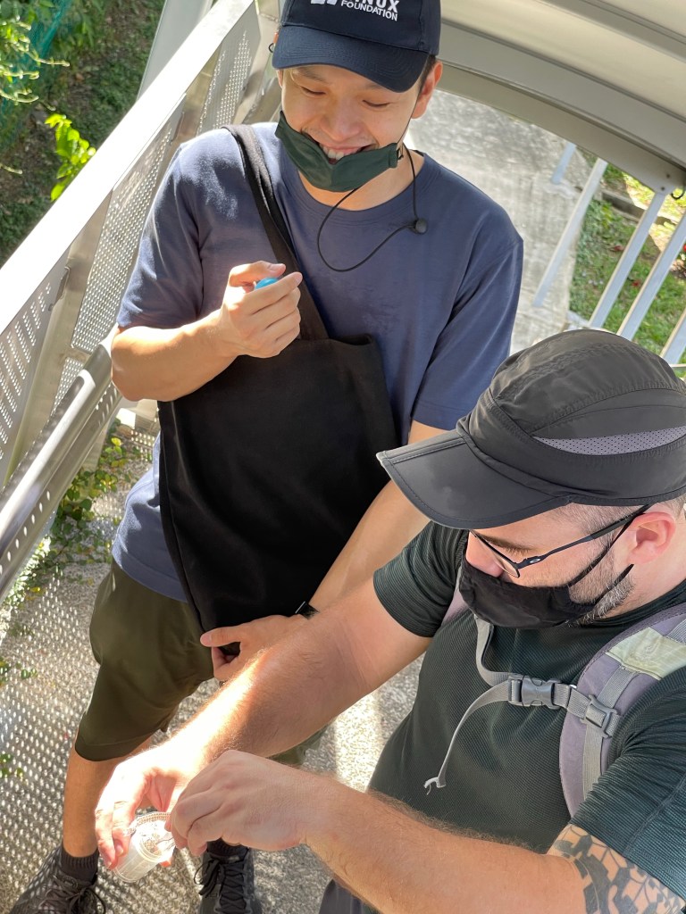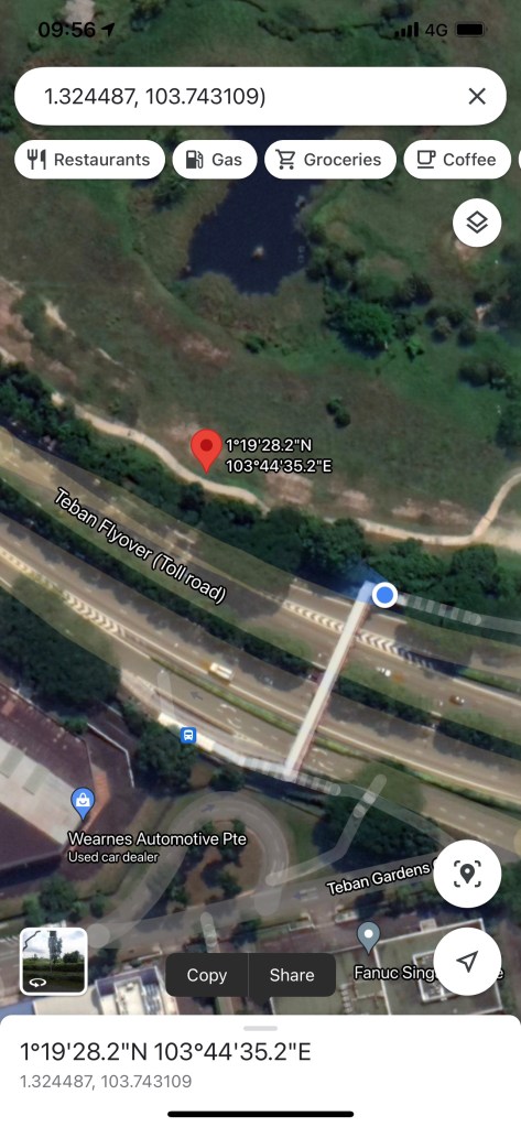 On the 11th August 2021 I walked with my family and Ryan Teoh, a Cyber Security specialist from Malaysia to hunt the coordinate #38 and #43. We started at Science Center in Jurong East. Coordinate #38 was located at the former golf course behind the Jurong Town Hall. We hoped the golf course is accessible from the street, but instead of an entrance we found a little “Dato Kong” temple down the road. The temple was colorful decorated and there were Taoist gods as well as Hindu gods. Ryan explained us the meaning of this very special kind of temples. “Dato” and “Kong” both means “grandfather” in Malay and Hokkien (a Chinese dialect) and those temples are build to worship all the spirits of the land.