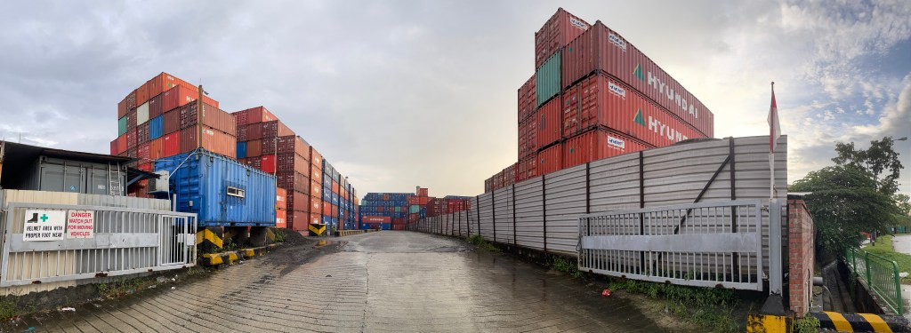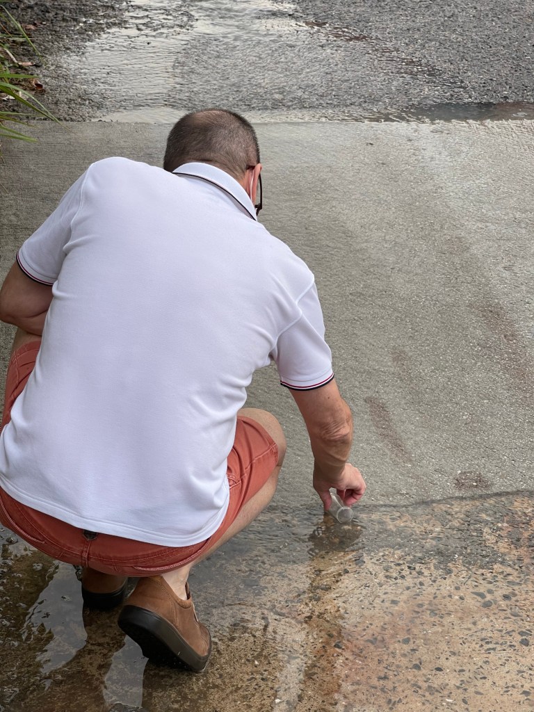 Before getting splashed again and again with rainwater by passing vehicles we decided to move on and looking for another coordinate, which was nearby. Coordinate #66 was surrounded by blue and red containers from one side and from a Exxonmobile refinery from the other side. So we sampled the closest area accessible, the entrance from the container company.