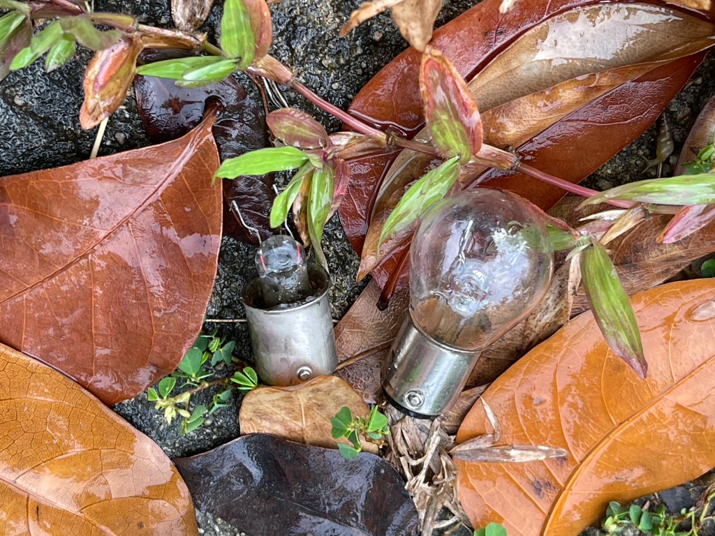 All the items could tell a story. Are the metal parts from the crossing a leftover from an accident? Who took the painkiller and why are there so many burned lightbulbs 💡?
