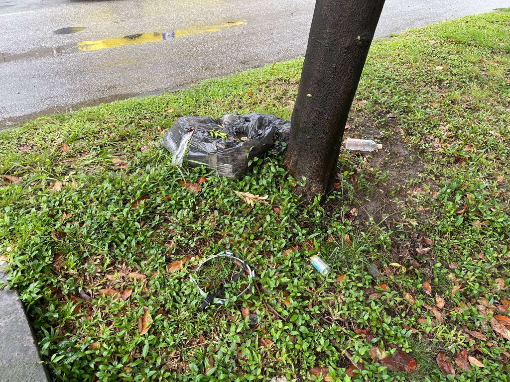 Coordinate #18 is located in the middle of a crossing on a pedestrian island. It was raining that day and when we reached the coordinate we got splashed by a passing truck. But this didn’t hold us back to observe the area closely. The place had two grass patches and the concrete sealed path way.