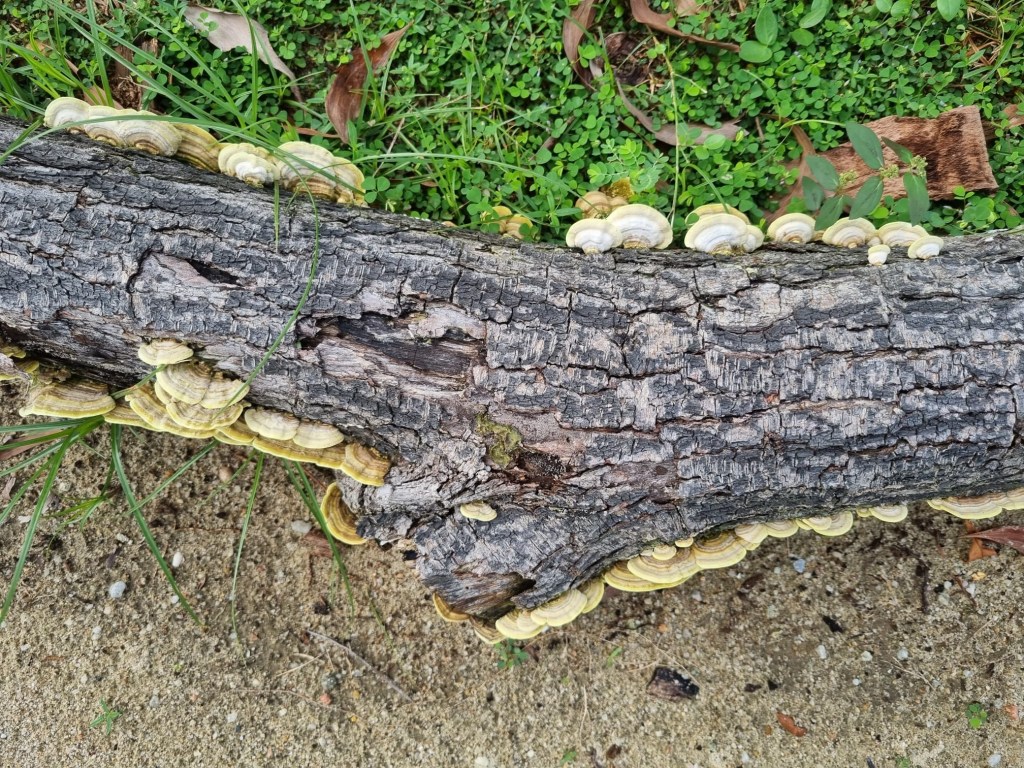 Nearby we found mushrooms of various colours on the old tree logs. The brilliant orange colour stood out to me and made for some fun photos.
