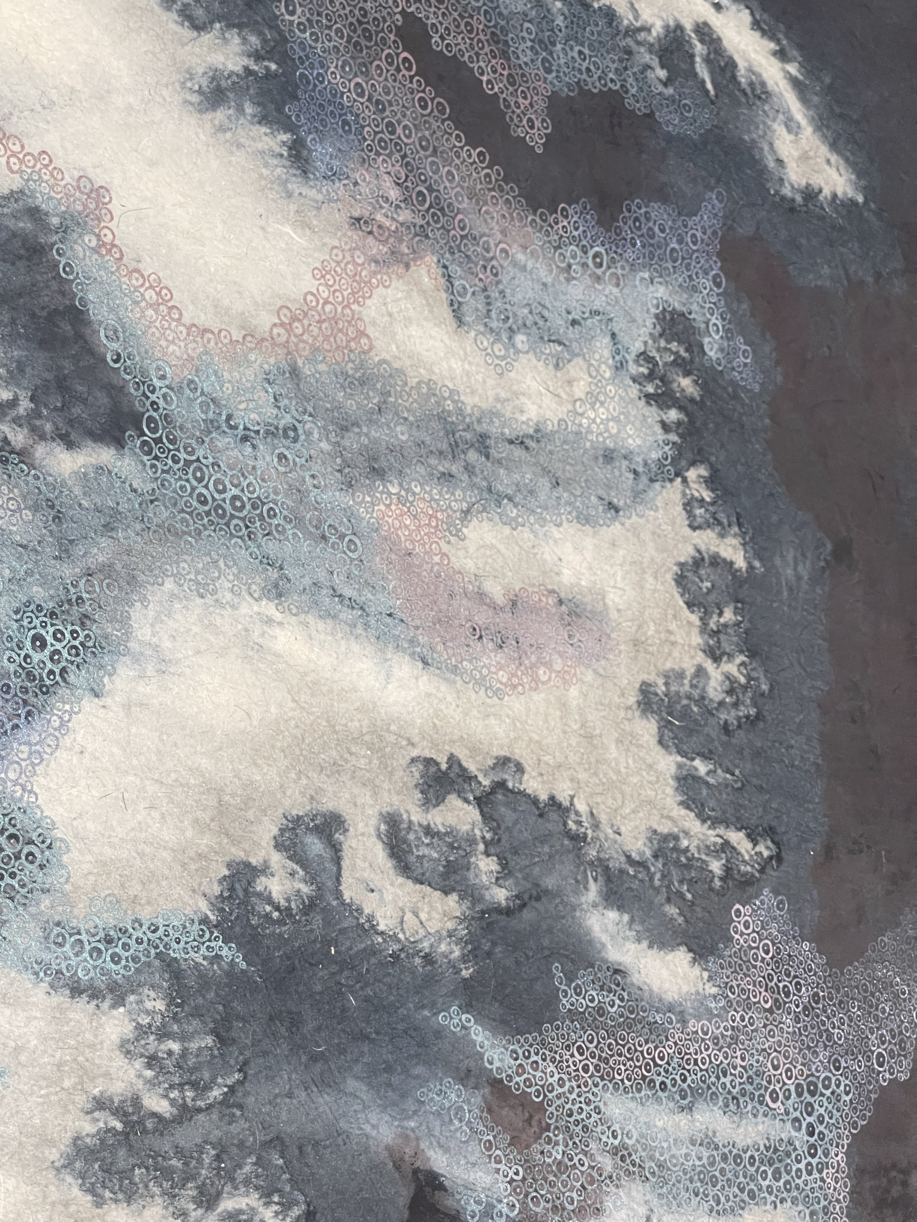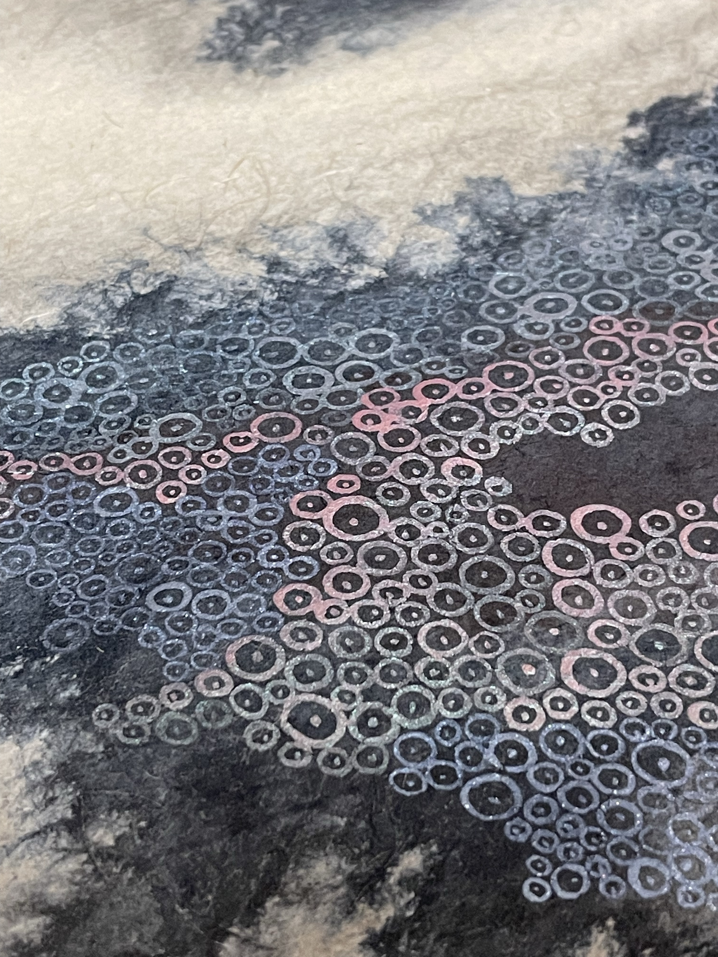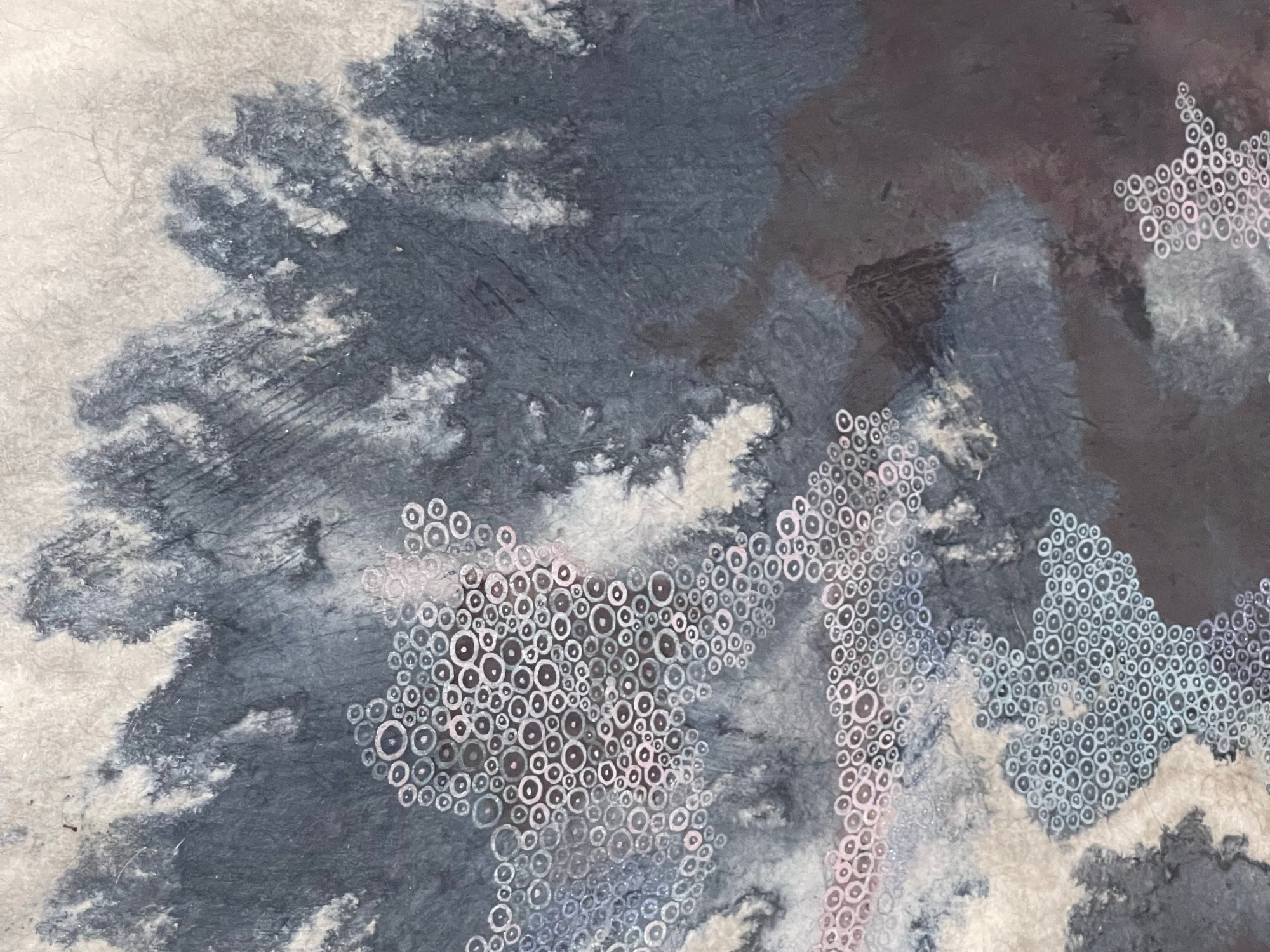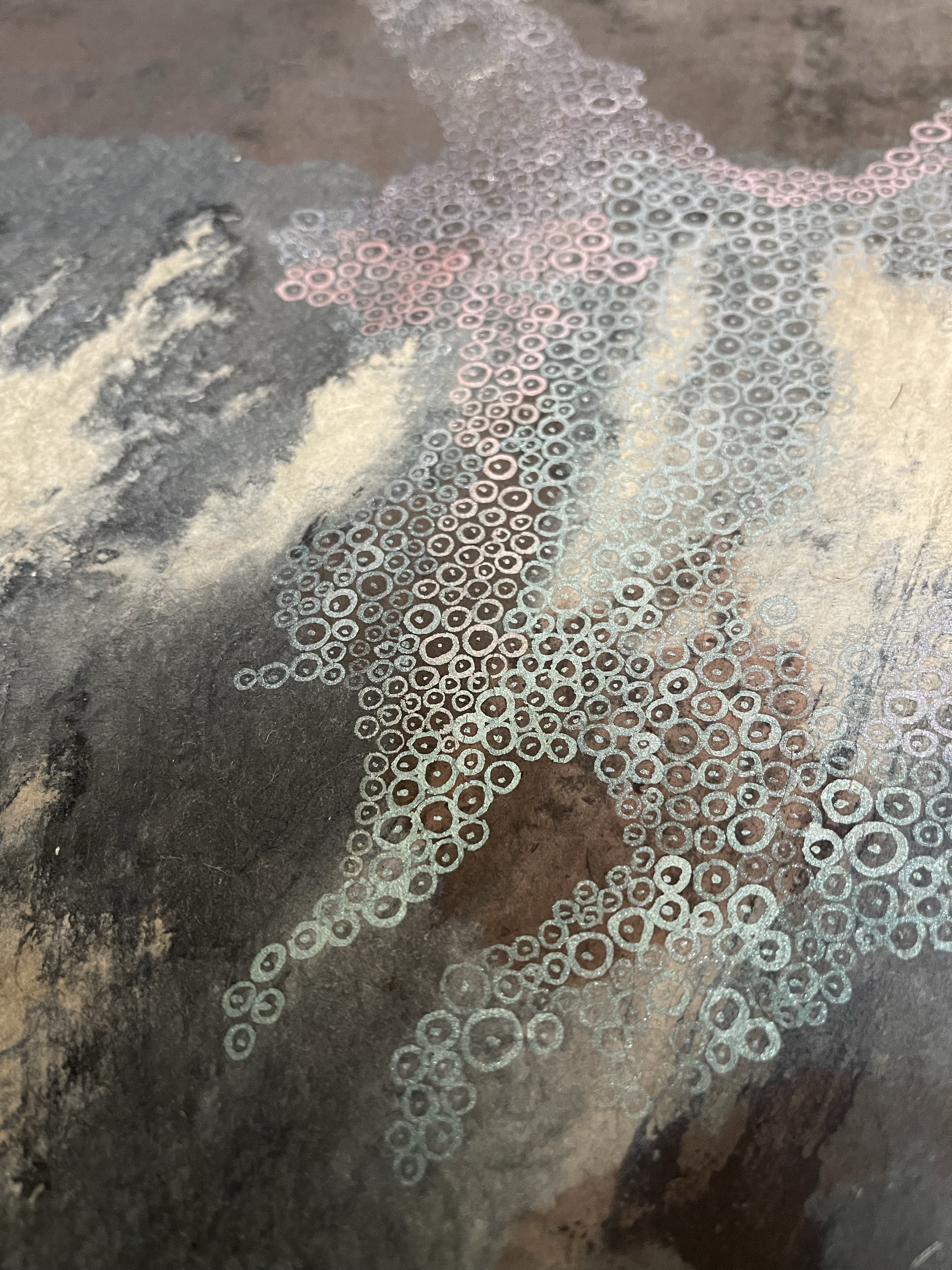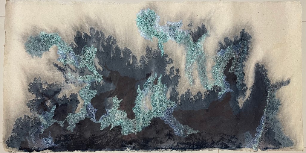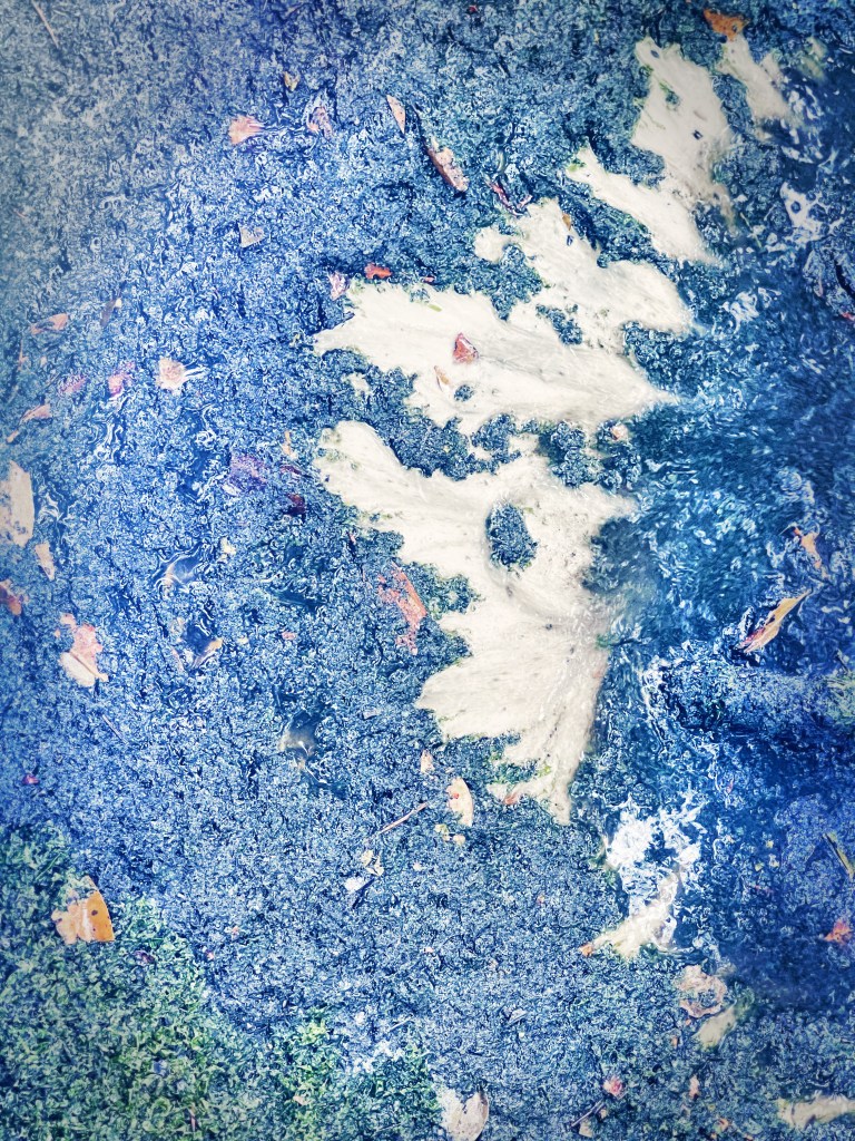 This spot was special. The mangroves plunge into white sandy ground, which were covered with a thick layer of algae. The play of the waves on the beach revealed from time to time the white substrate with veins of green algae.