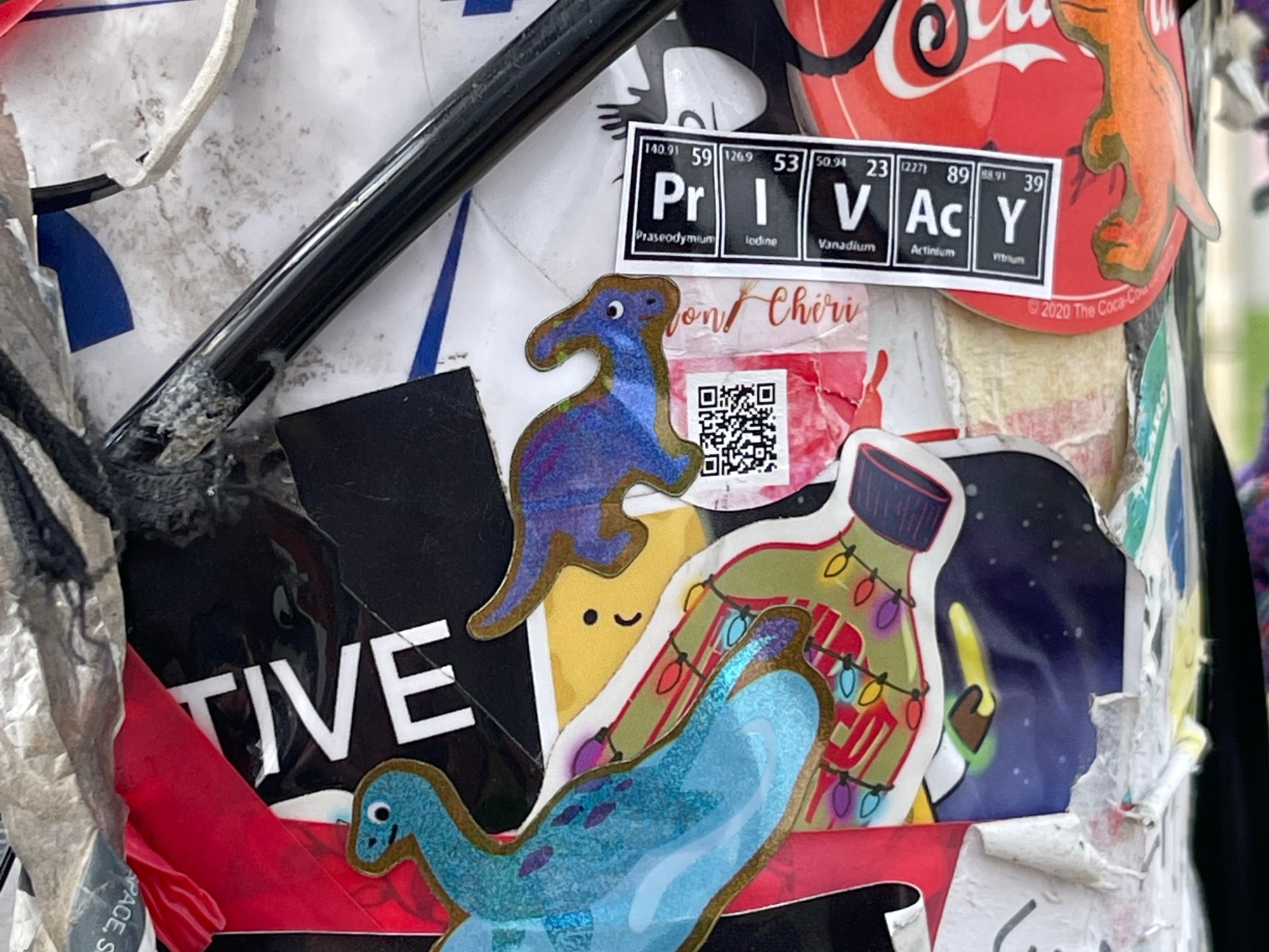 We contributed some to this installation of stickers, bike gadgets and everything else what people are carrying around those days and willing to hang on a lamp people hardly can approach. Who can spot our contributions in the pictures?