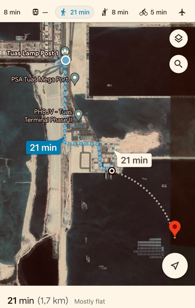 Manish is an architect and artist and knew a lot about Tuas as he was involved in planning some of the infrastructure in this area. He suggested to go to the Tuas Lamp Post 1, which is the closest public space to the coordinate.
