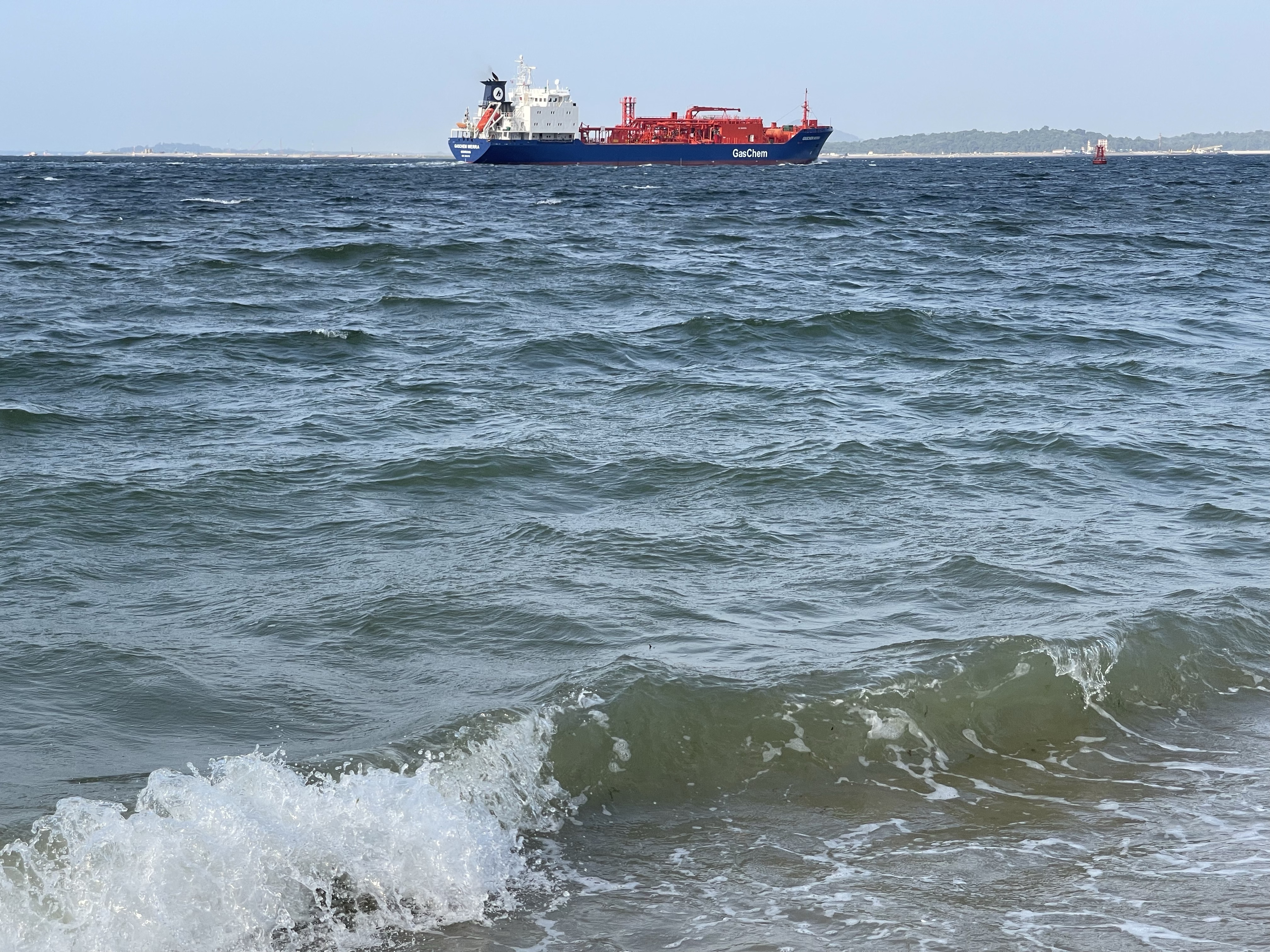Bettina pointed out that coordinate #73 was somewhere across the way on Tekong Island, which the Beach Park overlooks. I loved the half moon beginning to rise overhead. I’ve spent many hours looking and thinking about the moon here, somehow enchanted by its different angle as compared to my normal orientation much farther north on the globe. We cracked up when a cargo ship bulldozed through our picturesque view, with blockletters GASCHEM on the bow. I felt gratified that Bettina pointed it out and found it as annoying and funny as I did.