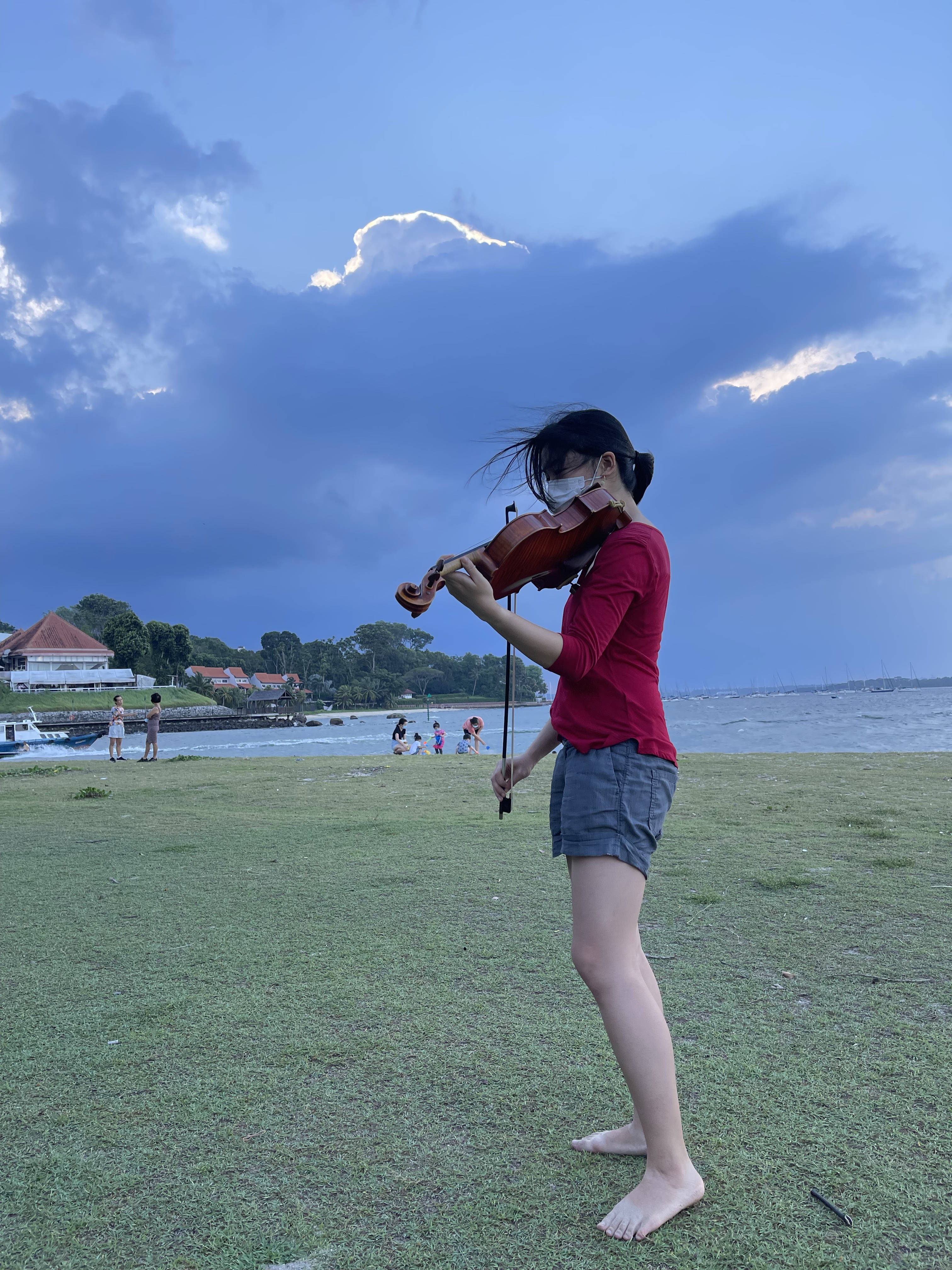 The wind was glorious—especially when the sun is so hot in Singapore—but it posed a dilemma for my recording, and my playing for that matter. Getting my bow onto the strings took a LOT of effort, especially because I did not want to make any sort of jarring sound. Nothing in the soundscape was abrupt—not the ebb and flow of the wind and ocean, the occasional tinkling of bicycle bells, the steady chatter of people hanging out—and I wasn’t trying to interrupt that with an inopportune crash as I fought to get my bow back onto the strings.