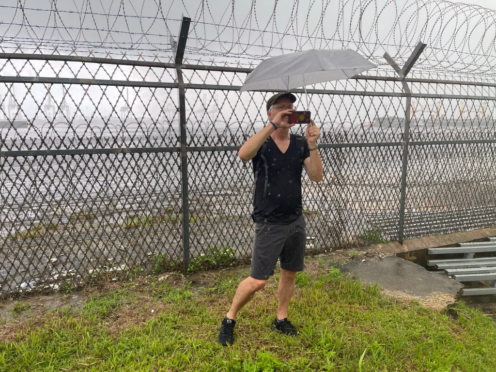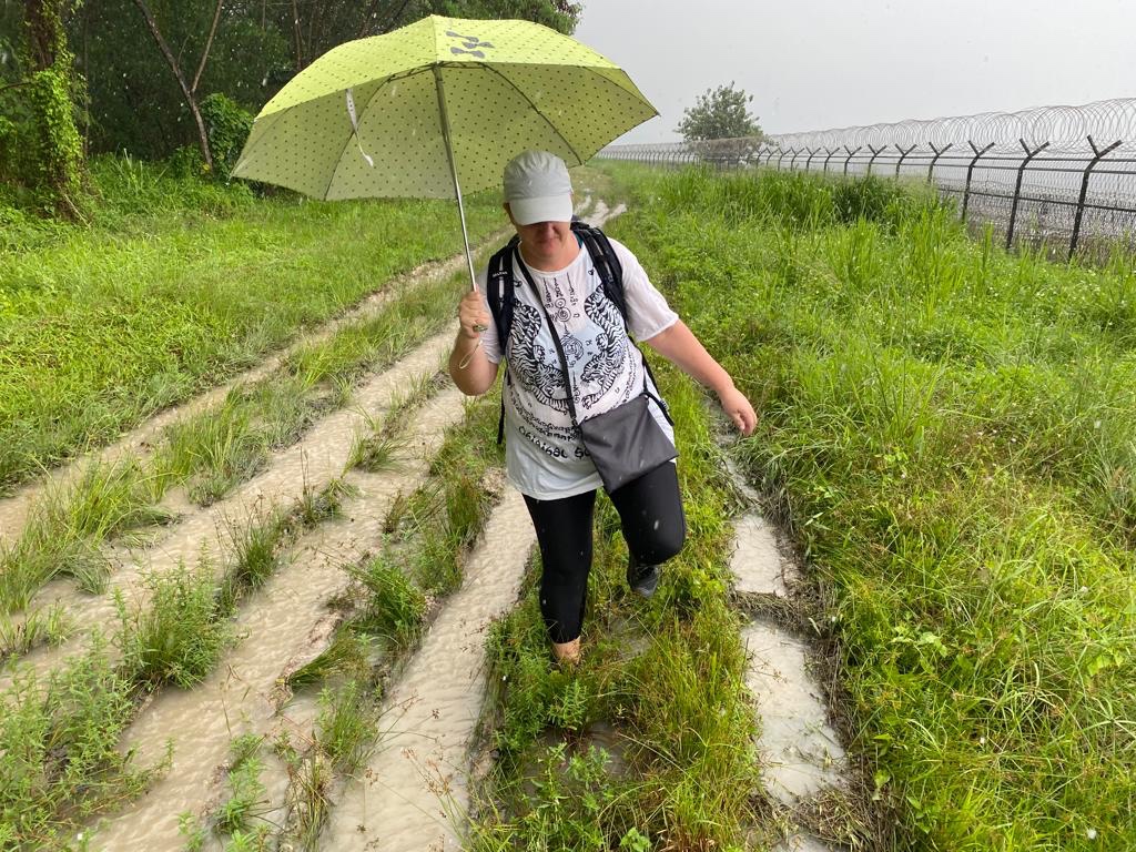 Suddenly it was pouring rain 🌧️ and it did not seem to stop. At the beginning we walked further with our umbrellas ☂️ and kept on documenting the area and looking for the exact spot. When we reached the coordinate we were wading through mud and water almost washed us away from the island. The cloudburst was so heavy that we could just stand and wait until the rain eased after a while to find back to firm ground.