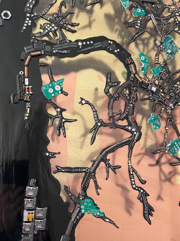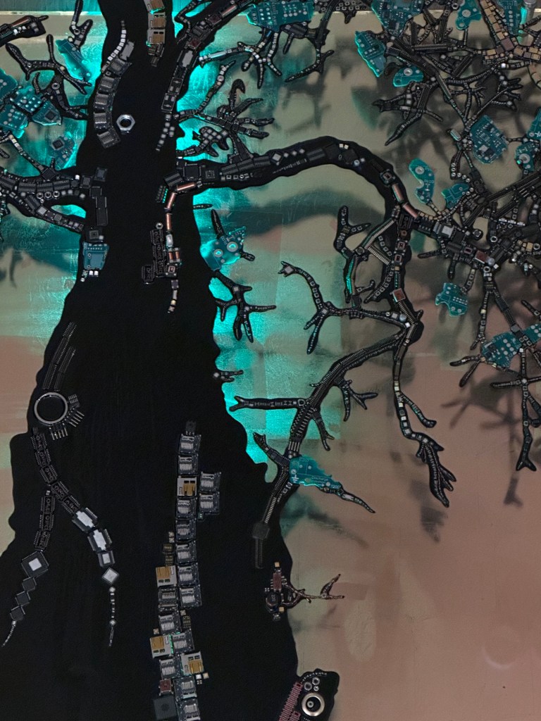 In the “Decision Tree”, nature’s gift of lacquer and the precise byproducts of technology come together, symbolizing the decisions that have shaped my past year and guiding the museum’s future. It is a celebration of heritage, a nod to progress, and a mentor for all who stand before it, contemplating the colorful journey of life.